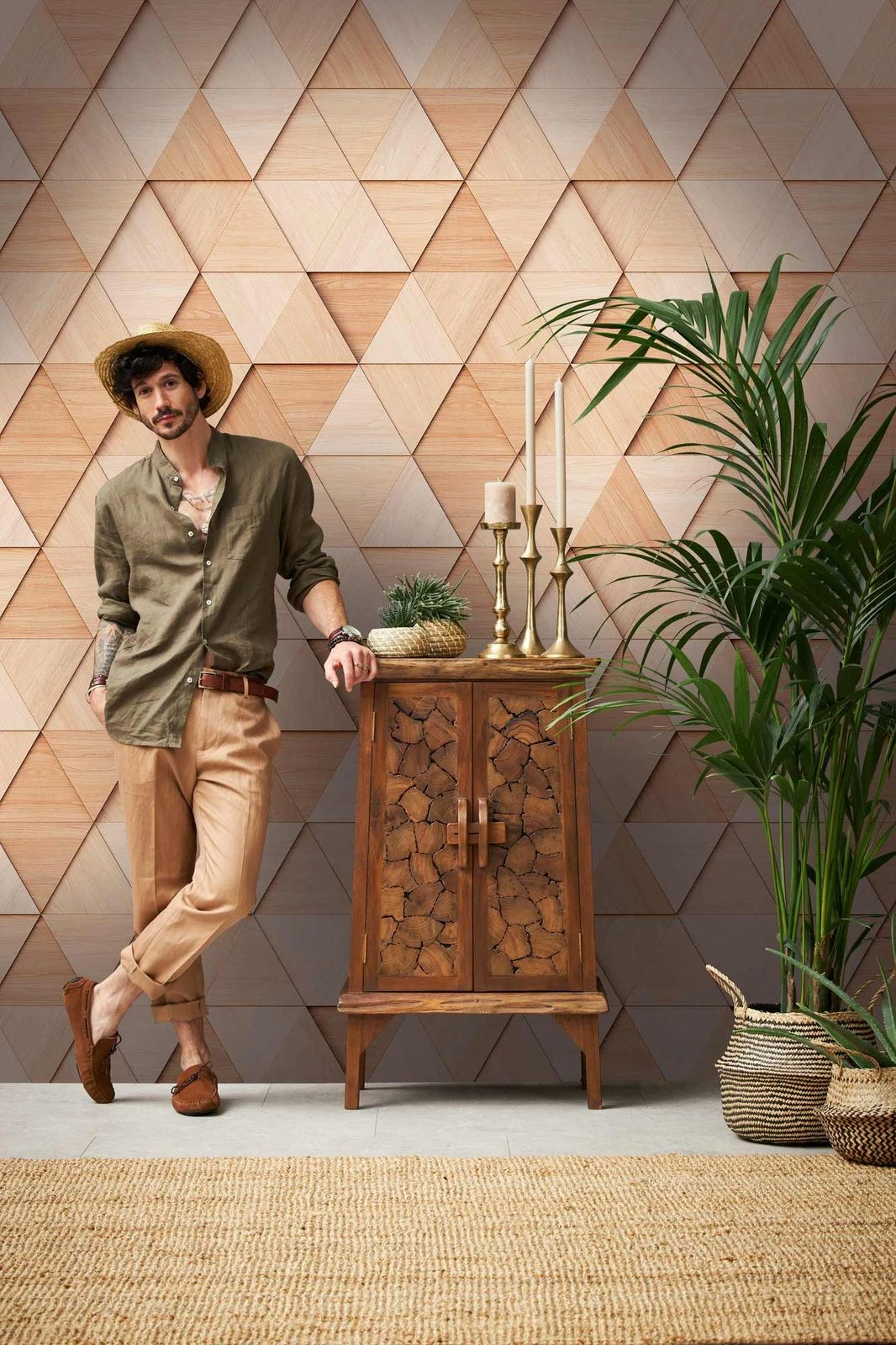 Die Vliestapeten aus der Kollektion „The Wall“ ist aus der Serie „Metropolitan Stories“ von AS Creation entstanden und wurde von mehreren Künstlern designt. Weltweit holten sie sich Inspiration aus großen Metropolen oder der Natur verschiedener Länder. Die Fototapete 38288-1 mit Holz-Dreiecke mit 3D-Effekt in braun verändert im Nu das gesamte Raumbild und beeindruckt mit ihrer hochqualitativen Auflösung des Digitaldrucks. Tapetenfans werden genauso wie wir begeistert von den schönen Motiven dieser Kollektion sein.