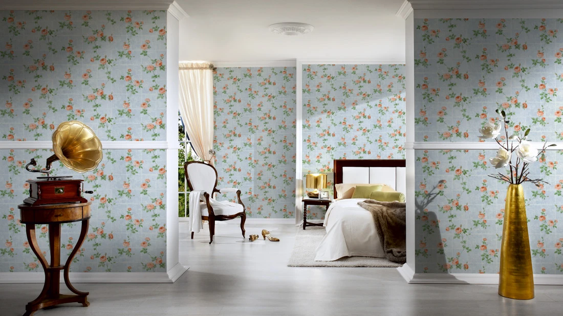 Vliestapete Floral Kacheln hellblau grün Glanz AS Chateau 34501-1
