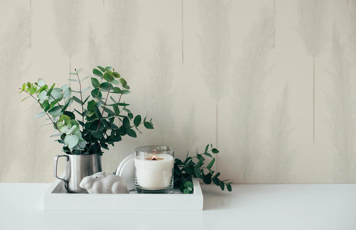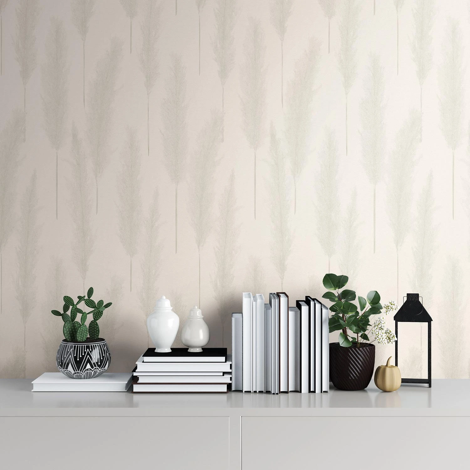 A.S. Création Vliestapete 386311 aus der Kollektion #hygge in grau und weiß mit Pampasgrasmotiv