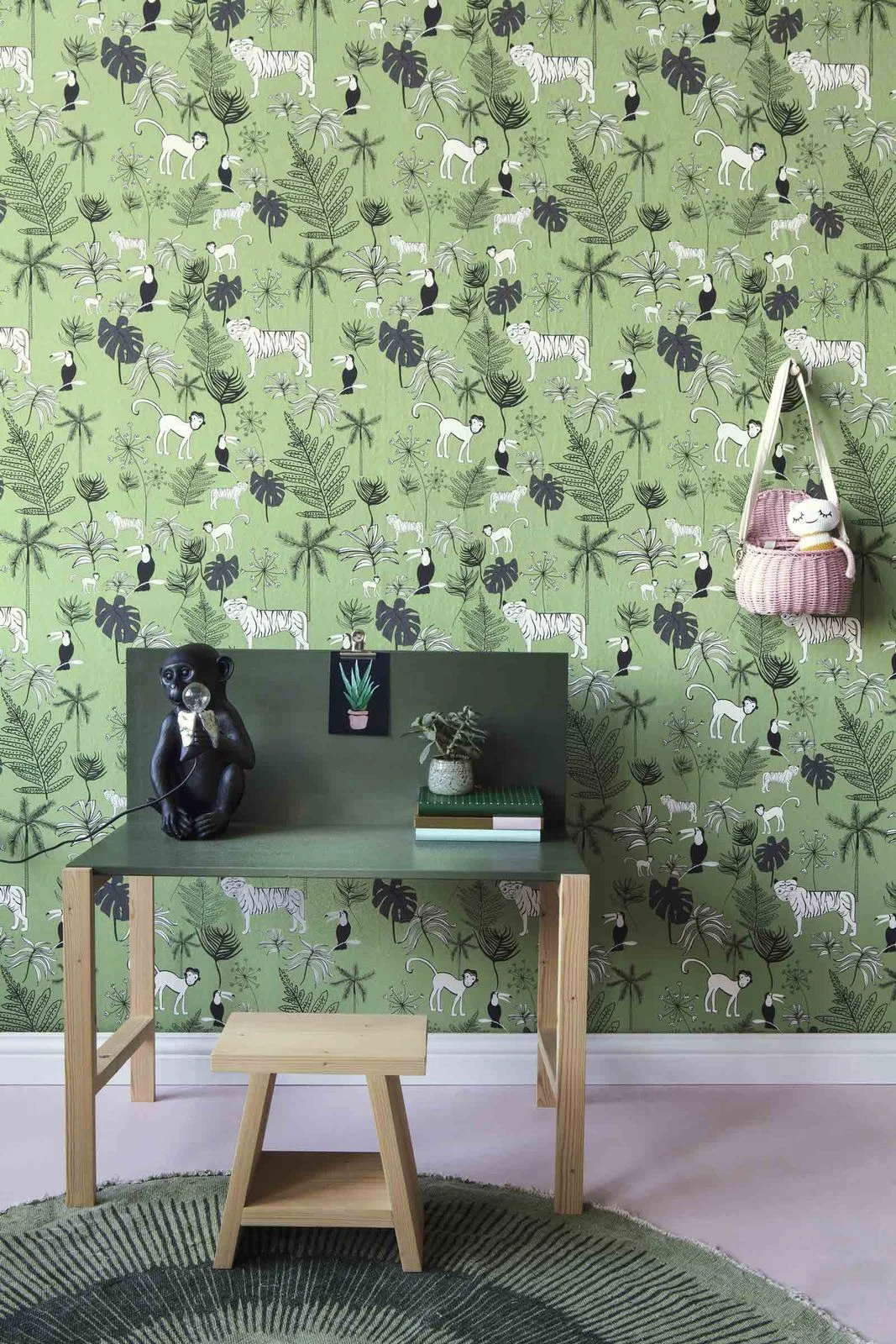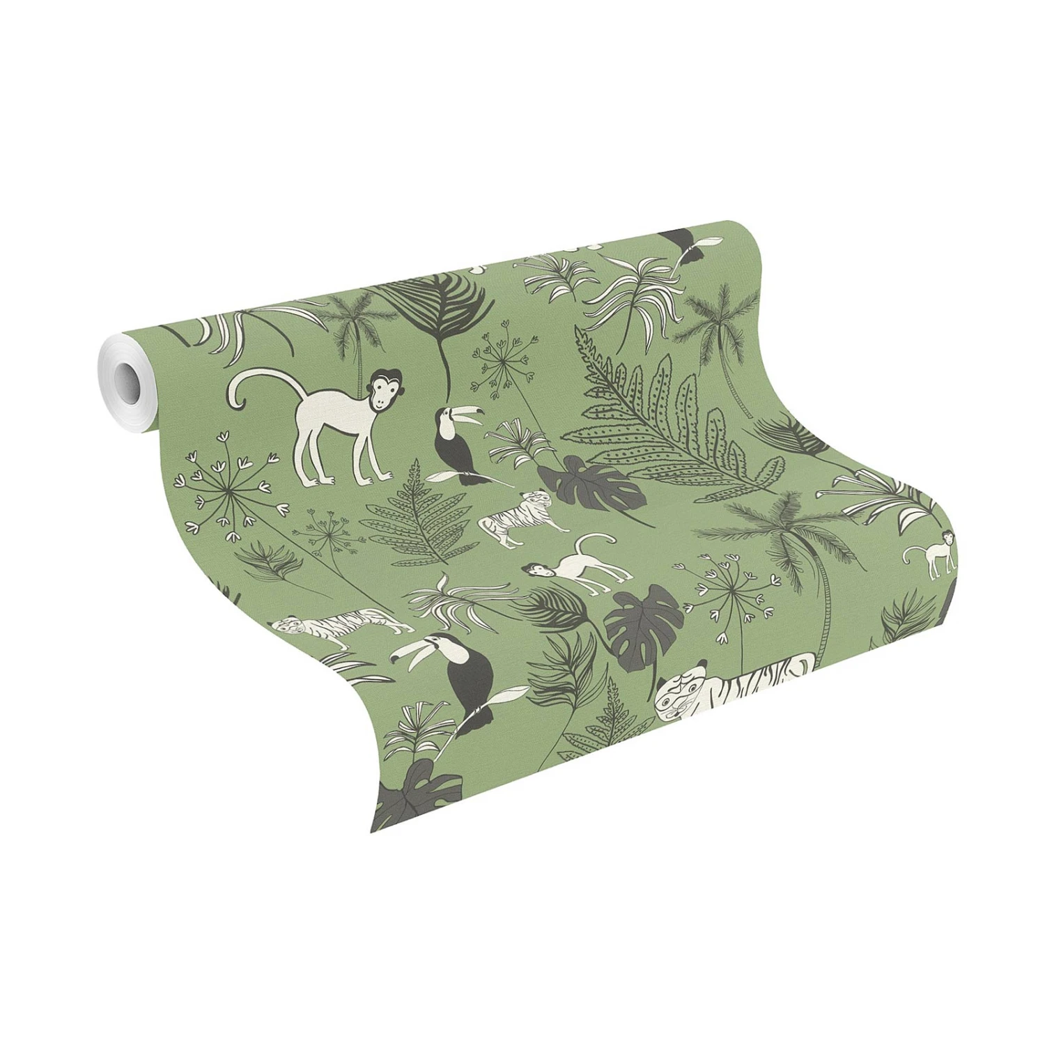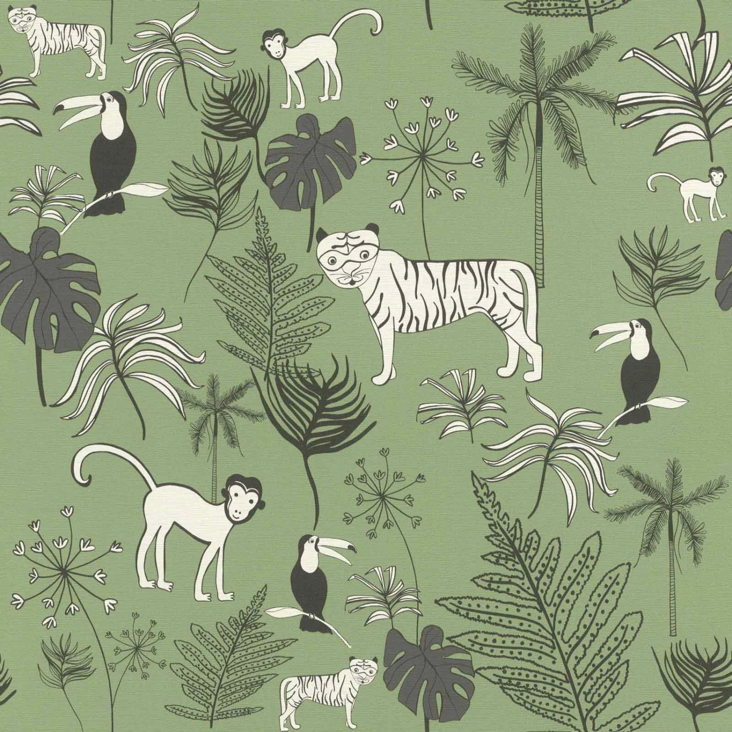 Kindertapete Rasch Dschungeltiere Bambino dunkel-grün 531817