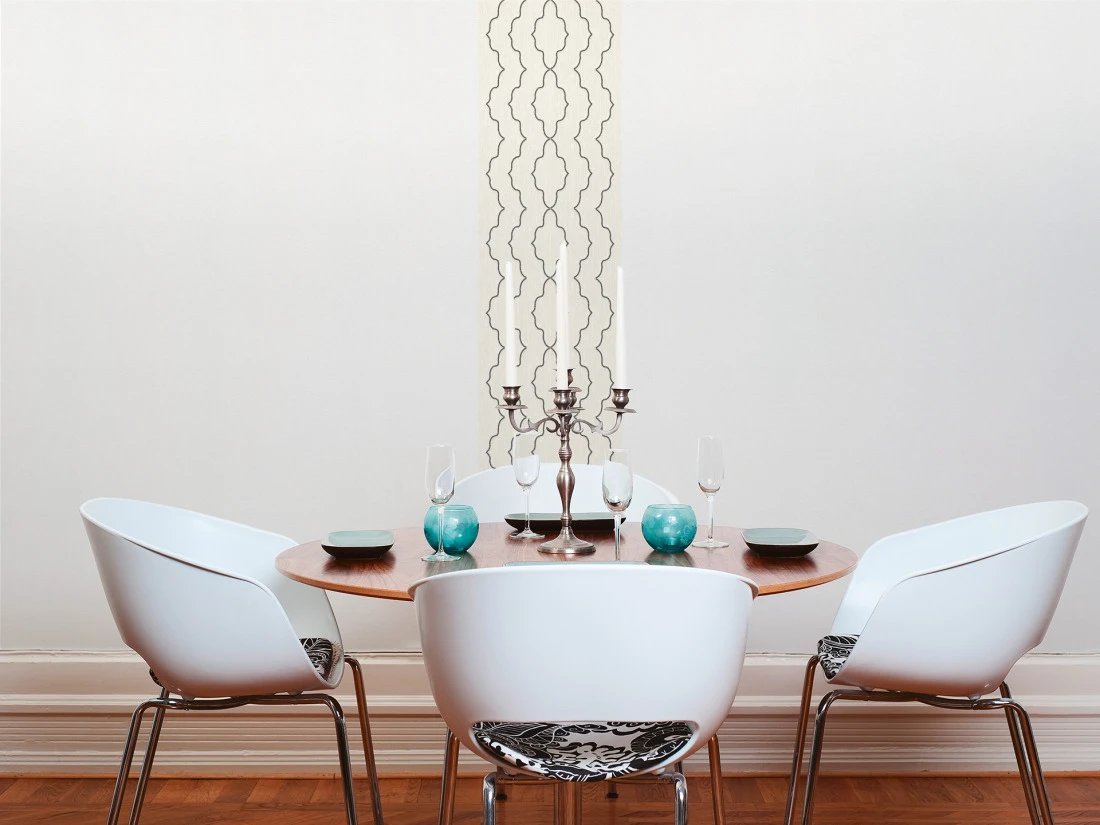 „Wall Fashion“ – Mode für Ihre Wände. Die neue Kollektion der Premiummarke Architects Paper vereint die hochwertigen Eigenschaften einer Textiltapete mit zahlreichen Mustermixen und Farbkombinationen. Das Tapetenpanel 30615-3 kreiert mit einem Designmuster in creme-beige, welches mit schwarzen Pailletten besetzt ist, einen vornehmen Charakter, der edle Akzente setzt und Ihre Wohnräume mit einem ausgefallenen Glanz-Effekt in einen Ort voller Individualität verwandelt. Die Pailletten auf dem Textilträger sind echt und schimmern angenehm bei Lichteinfall und verleihen dem Tapetenpanel dabei eine außergewöhnliche Optik. Der luxuriöse Wandschmuck ist gut lichtbeständig und bei Bedarf restlos trocken abziehbar.