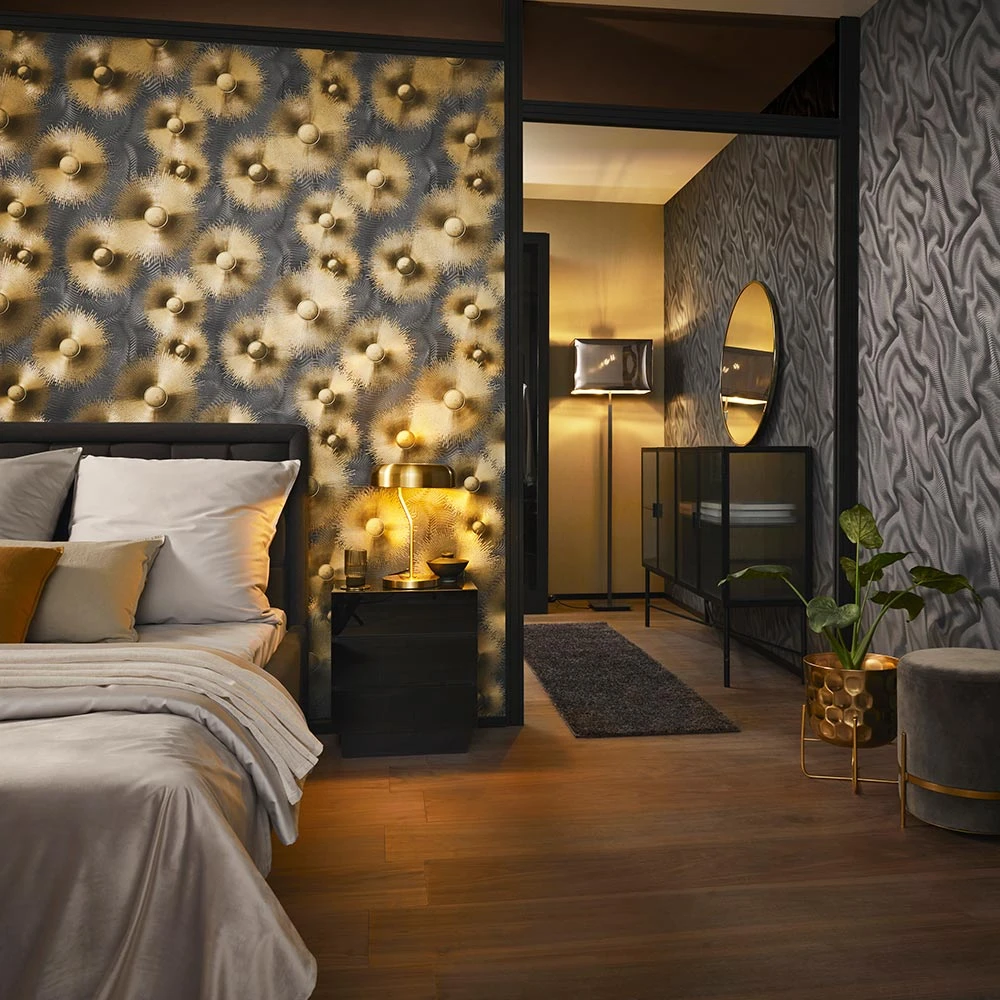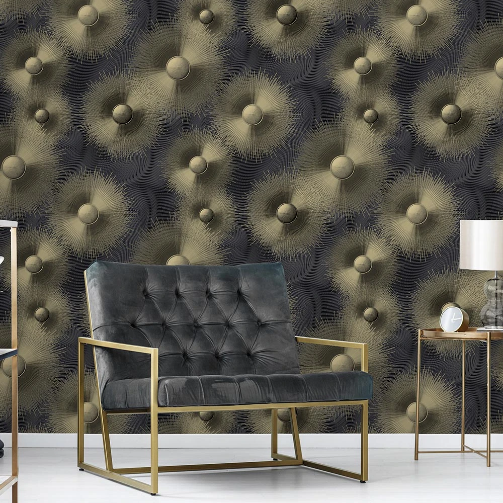 Mit den Vliestapeten aus der Designer-Kollektion ELLE Decoration setzt du elegante Akzente in jeden deiner Wohnräume. Edle Designs und metallisch-glänzende Farben setzen dein Zuhause gekonnt in Szene. Die Tapete 10191-15 mit grafischen Kreise wie Sonnen in gold, schwarz verleiht deinem Wohnzimmer mit ihren Metallic-Effekten ein modernes Wohngefühl und bringt deine Gäste zum Staunen.