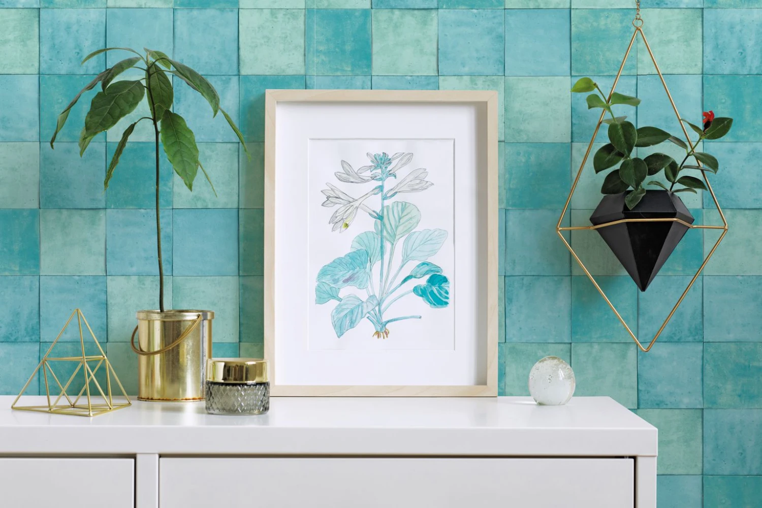 Tapete Vlies Kacheln Fliesen grün blau Zellige Marburg 45720