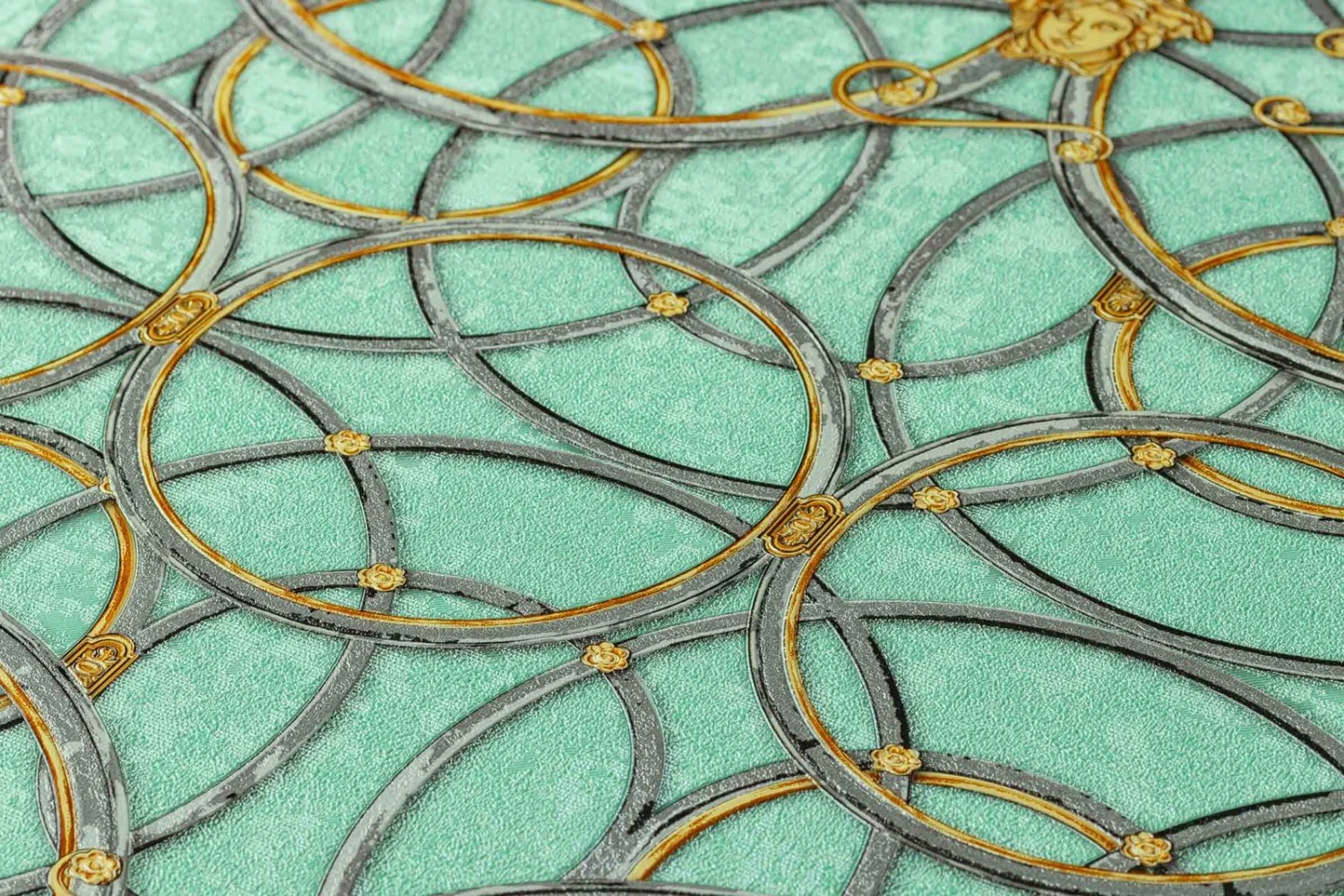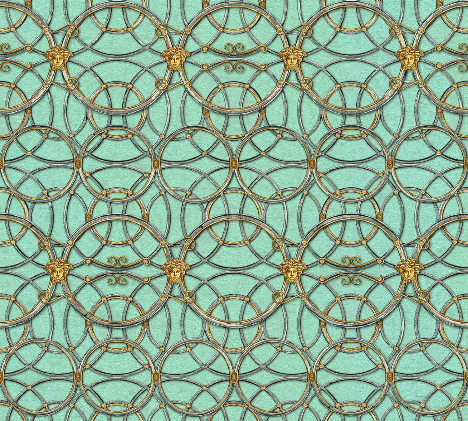 Versace Home IV Vinyltapete Medusa Ringgrafik mintgrün silber gold Metallic 370497 | 37049-7