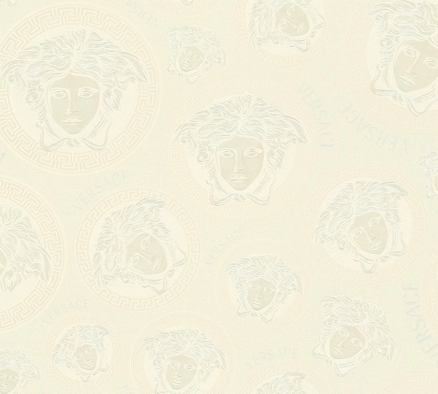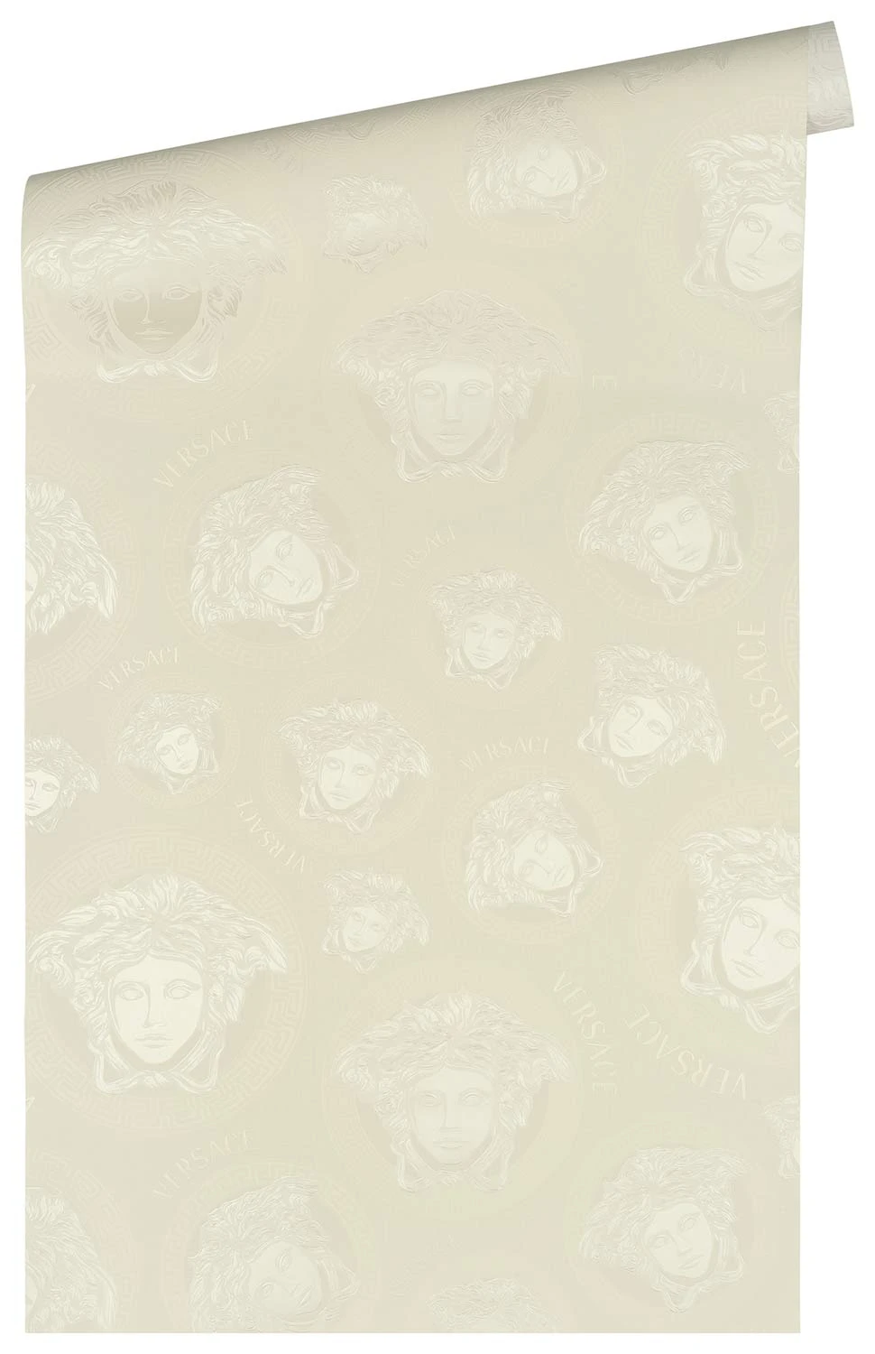 Mit den Vliestapeten der Versace Home 5 Kollektion bringen Sie den einzigartigen Stil der Luxusmarke Versace an Ihre Wände. Die Tapeten zeigen typische Versace Motive wie Medusaköpfe oder Mäandermuster. Aber auch schlichte Uni-Tapeten können Sie hier finden. Die Tapete 38611-6 in Weißtönen mit glänzenden Akzenten besticht durch ein Medusa-Kopf Motiv. Lassen Sie sich von den Versace Home Tapeten überzeugen und entdecken Sie die komplette Kollektion bei uns im Shop.