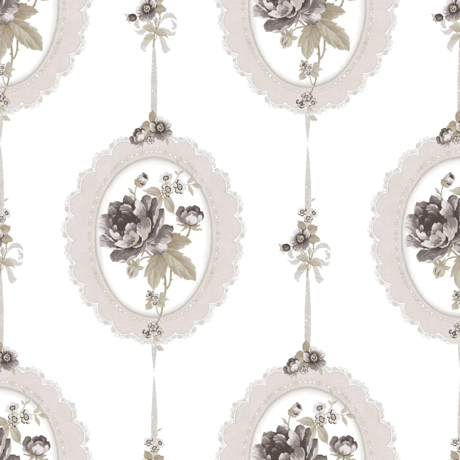 Vinyltapete Rose Bilderrahmen creme beige anthrazit Blooming Garden IX World Wide Walls 107815