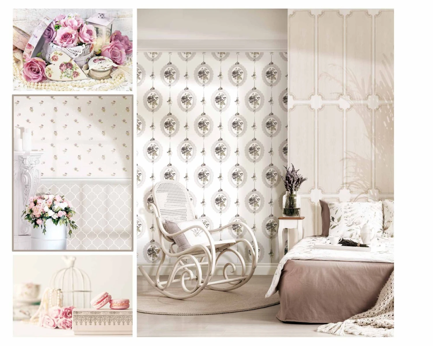 Sie träumen von Ihrem eigenen lichtvollen Cottage, aber das Landhaus fehlt Ihnen? Mit den Tapeten der Kollektion „Blooming Garden 9“ von World Wide Walls machen Sie aus Träumen Realität – auch in der kleinsten Wohnung! Die Vinyl-auf-Vlies-Tapete 107815 mit Rosen in Medaillon-Bilderrahmen in creme, beige und anthrazit bringt Ihnen lichtvolle, romantische Shabby Chic Gemütlichkeit auch auf kleinstem Raum. Arrangieren Sie sich Ihre persönliches zwei- oder gar dreiteiliges Traum-Wanddesign mit dieser liebenswerten Kollektion und verändern Sie Ihr Wohngefühl zuhause komplett.